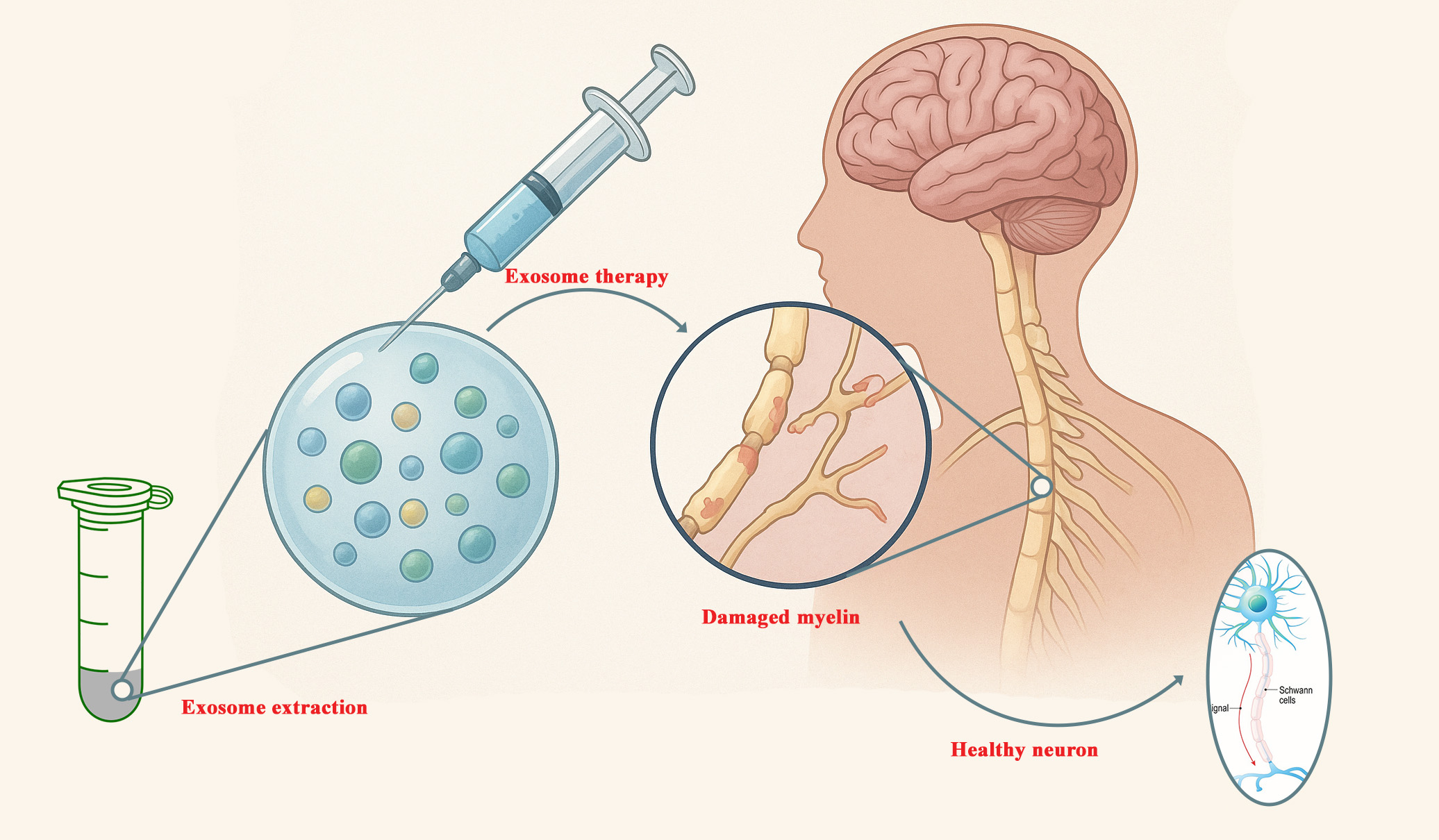Multiple sclerosis (MS) is a chronic, progressive, and immune-mediated disorder of the central nervous system (CNS) characterized by inflammation, demyelination, and axonal injury, ultimately leading to neurodegeneration and irreversible disability. Despite extensive research, the precise pathophysiological mechanisms underlying MS remain incompletely understood. MS is now widely accepted that MS is a multifactorial and heterogeneous disease influenced by genetic susceptibility, environmental factors, and dysregulated immune responses. Complex and dynamic interactions among T cells, B cells, microglia, astrocytes, and exosomes play pivotal roles in the initiation, amplification, and persistence of inflammatory cascades that result in neuronal injury and loss of myelin integrity. Current therapeutic strategies rely primarily on disease-modifying therapies (DMTs) that modulate autoimmune activity, reduce relapse frequency, and delay long-term disability, including injectable agents such as interferon-β and glatiramer acetate; oral medications such as dimethyl fumarate, teriflunomide, and fingolimod; and monoclonal antibodies such as natalizumab, alemtuzumab, and ocrelizumab, which provide enhanced efficacy for selected patient groups. However, variability in individual treatment responses and safety concerns related to chronic immunosuppression, risks of infection and malignancy, remain major challenges. Recently, regenerative and cell-based therapies have emerged as promising alternatives, particularly for patients with refractory or progressive MS. Hematopoietic stem cell transplantation, mesenchymal stem cell therapy, and exosome-based interventions demonstrate remarkable potential for immune reconstitution, neuroprotection, and remyelination. This review provides a comprehensive overview of MS pathogenesis, summarizes advances in both established and emerging therapeutic modalities, and underscores the need to integrate immunomodulatory and neuroregenerative approaches to achieve durable remission and meaningful functional recovery.
