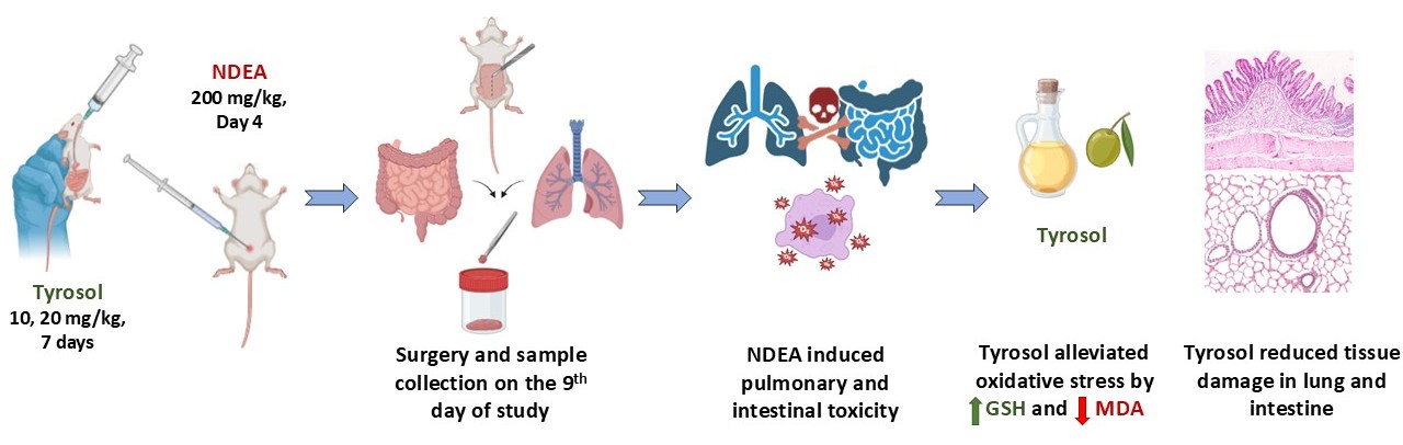 Maleki E, Zargari M, Mirzaei M, Karimpour Malakshah A A, Talebpour Amiri F. Evaluation of the effect of exposure to N-nitrosodiethylamine on rat lung and intestine and the protective effect of tyrosol: A Biochemical and Histopathological study. J Mazandaran Univ Med Sci 2025; 35 (250) :3-14