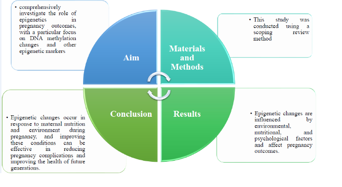 Materials and methods: This study utilized a scoping review method, which involved formulating a research question, systematically searching scientific databases, selecting relevant articles, analyzing data, and tabulating the results. English-language articles were extracted from Scopus, PubMed, and the Web of Science) WOS (databases, and while Persian articles were sourced from SID and Google Scholar. The search was performed using keywords such as "Epigenetics," "Epigenetic Interventions," "DNA Methylation," "Histone Modification," "Non-coding RNA," "Pregnancy Outcome," "Prenatal Care," "Maternal Health," "Fetal Development," "Fetal Health," "Premature Birth," "Birth Weight," and their Persian equivalents.